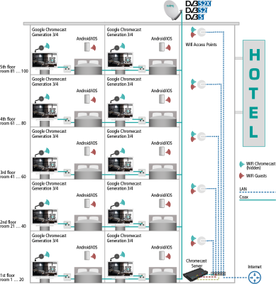 • Lösung zum Streamen von eigenen Inhalten der Gäste auf dem Hotel-TV